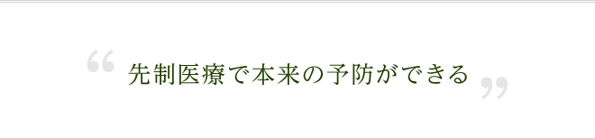この考え方は、当然のように保険診療になかった「予防」に対しても「先制医療」としてしっかり取り組んでいます。